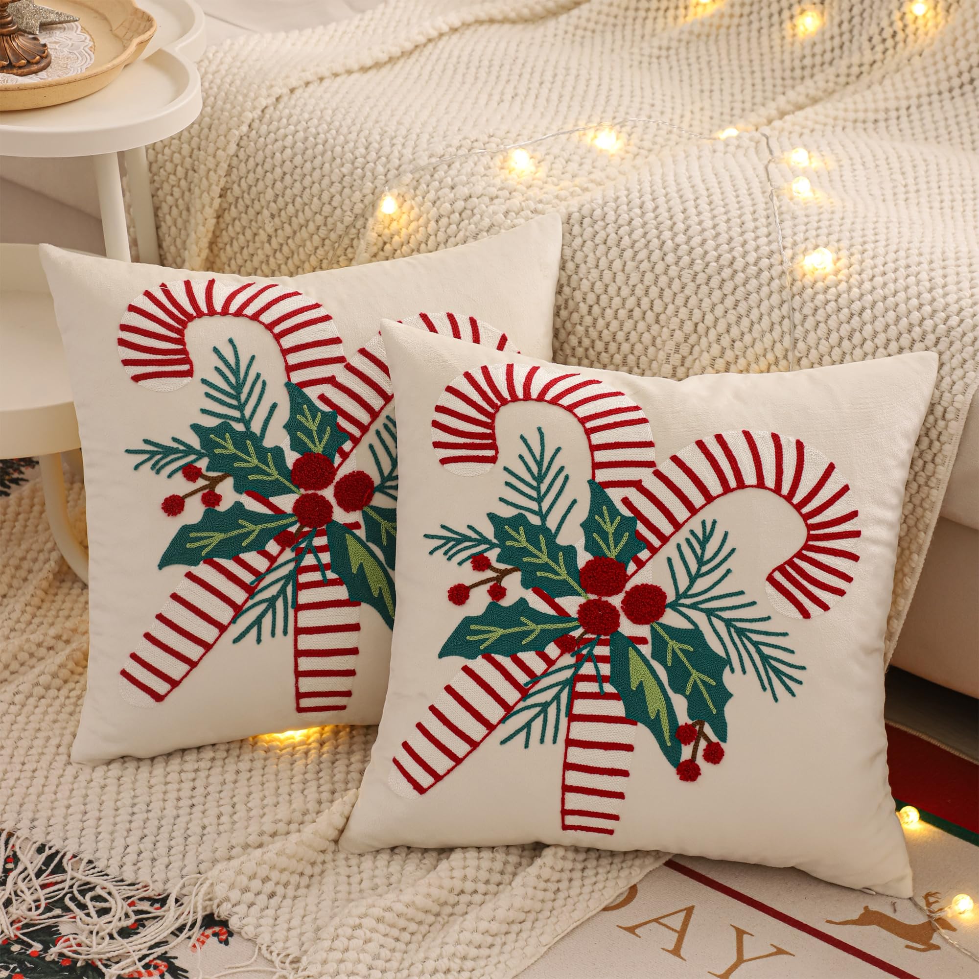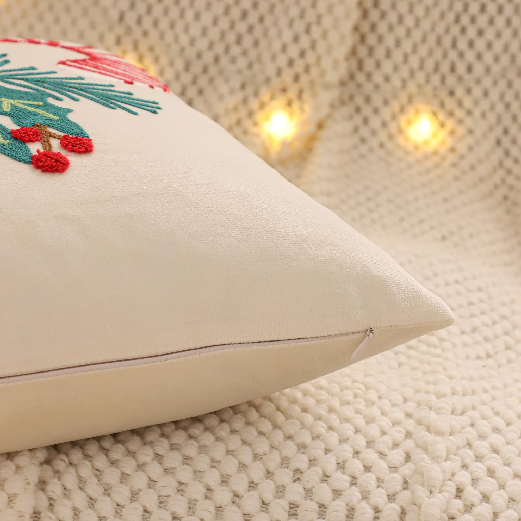 Photo-friendly cream base: Brightens sofas and beds; classic holiday palette that works with Nordic, farmhouse, and modern décor