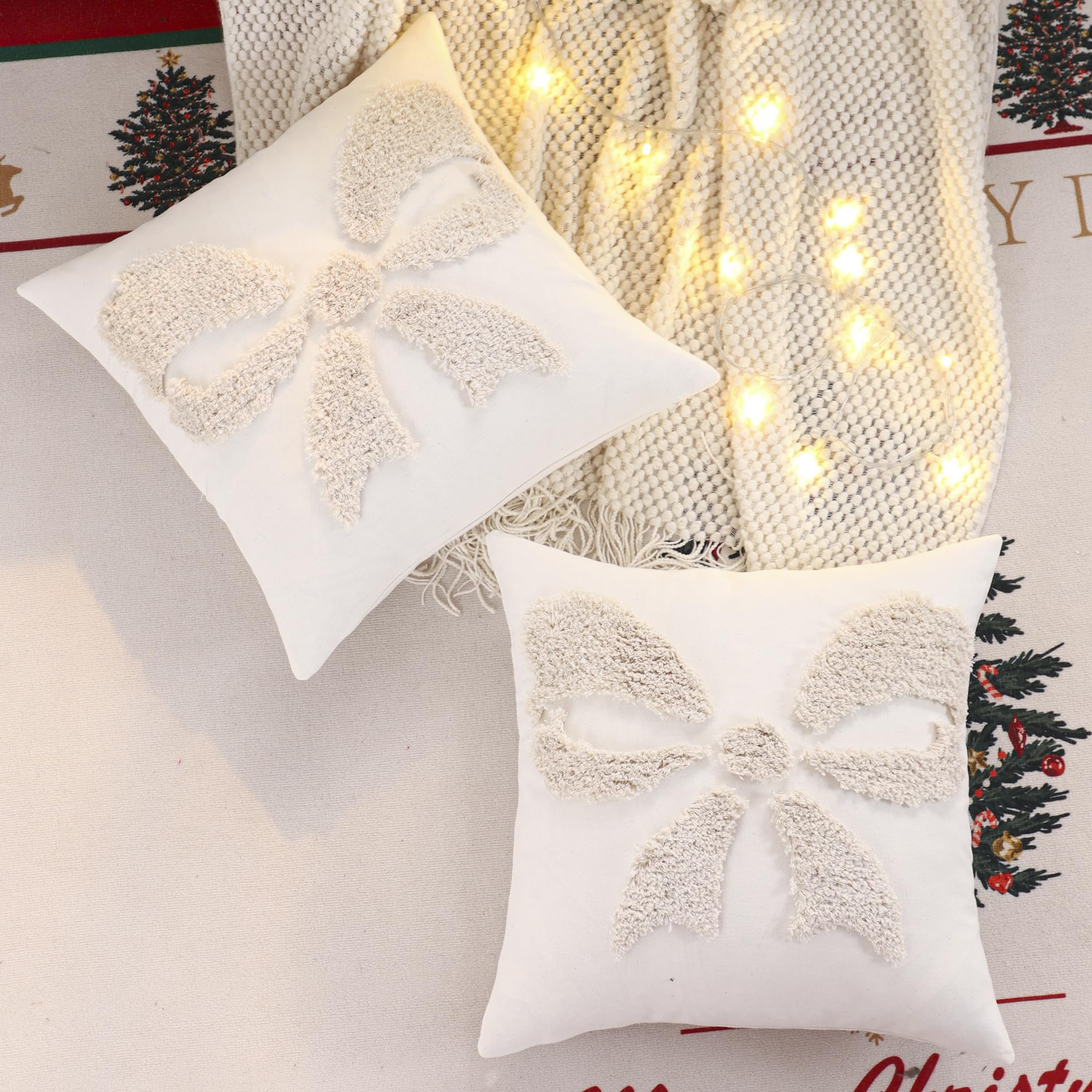 Cuddly texture: Plush loop tufting creates a soft, dimensional bow—sweet but minimalist